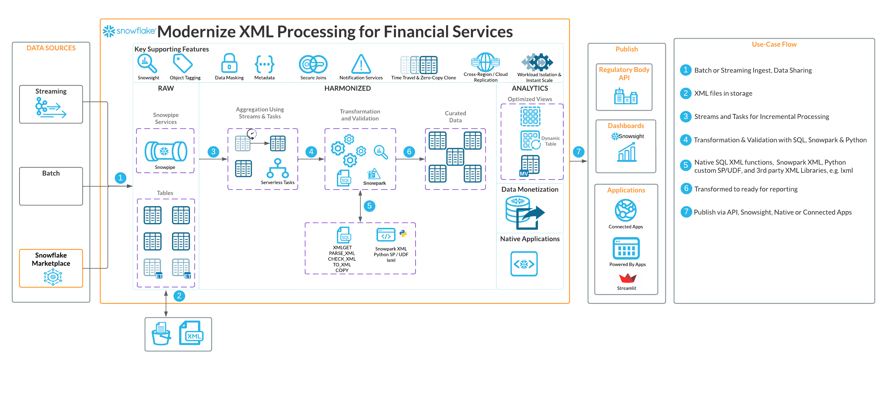 This solution harnesses the power of Snowflake SQL XML functions to validate, parse, extract and render financial data in XML format.