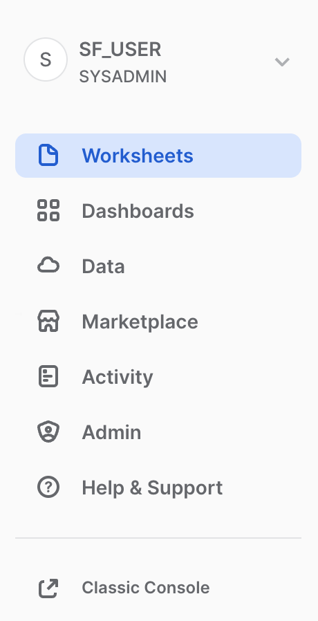※以下の説明は、Snowflake公式ドキュメントのSnowsightナビゲーションメニューを参考にしています。