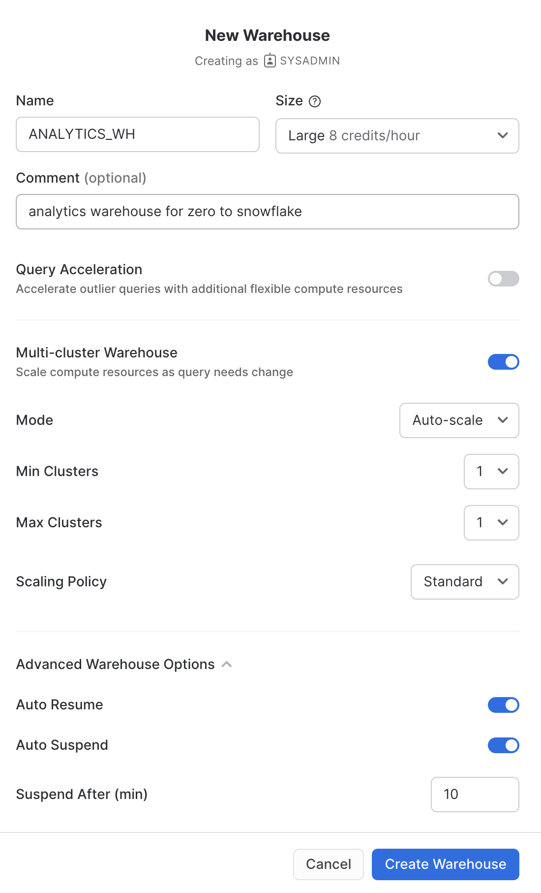 ロール:SYSADMINウェアハウス:COMPUTE_WH