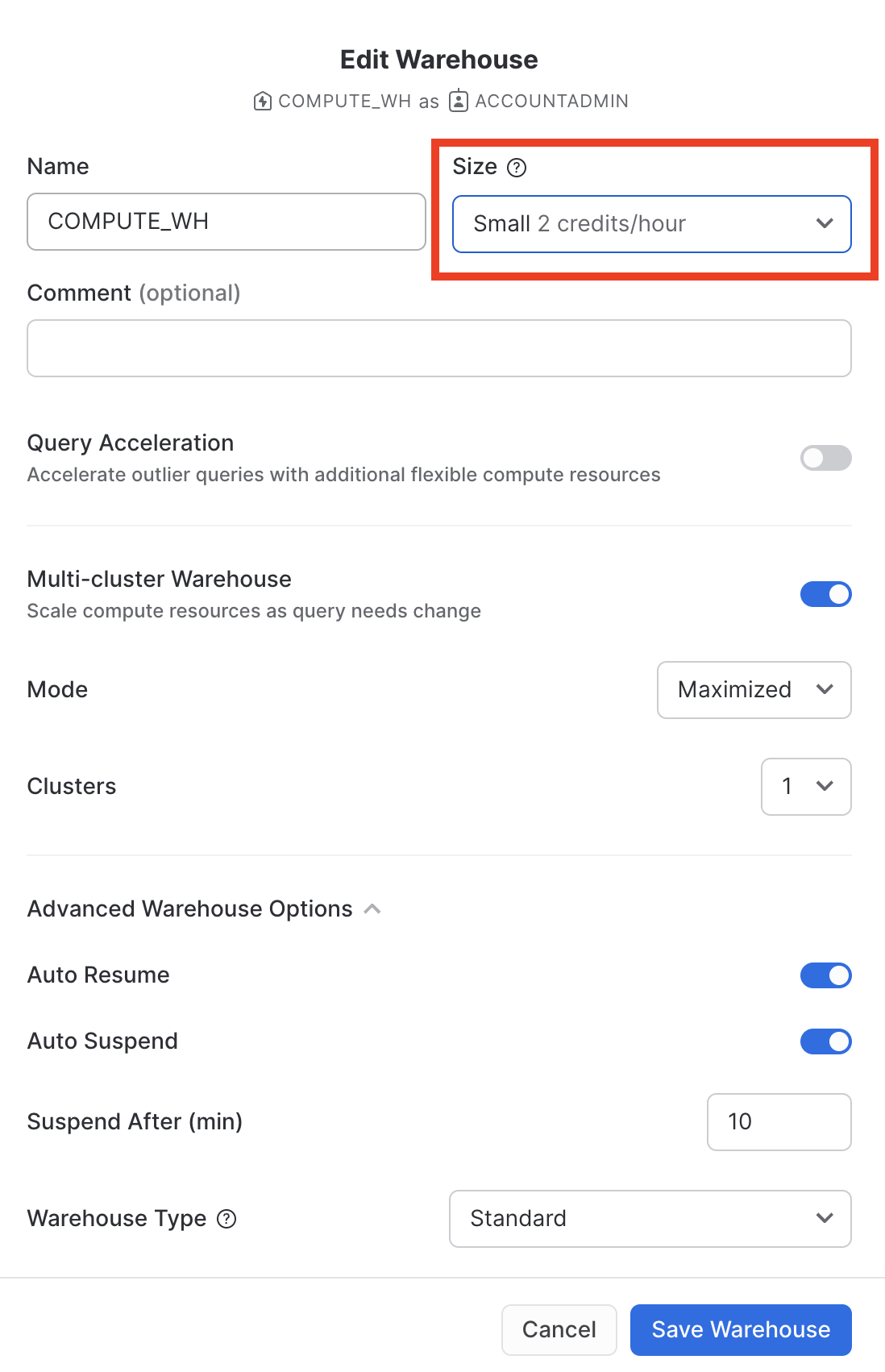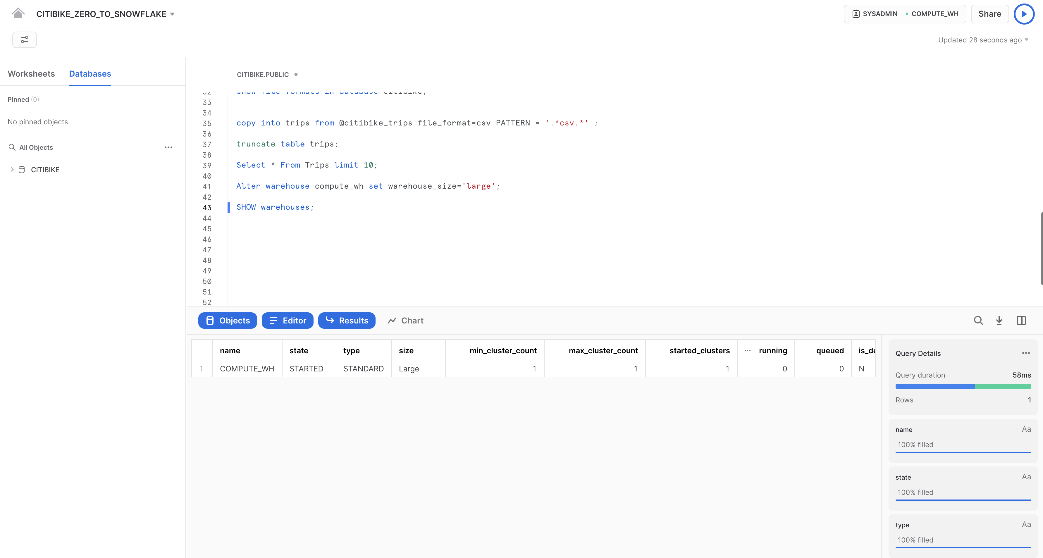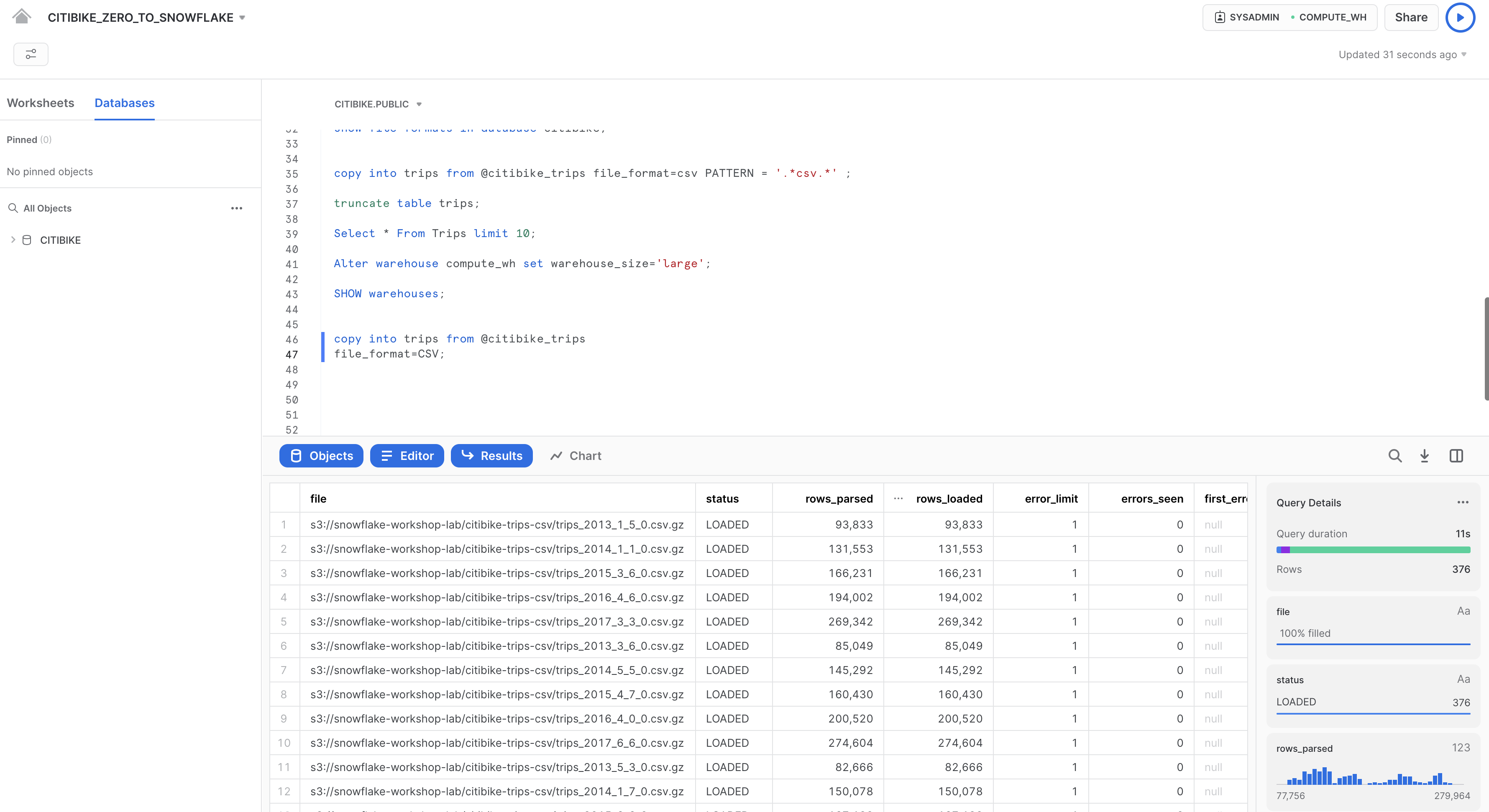 ロール:SYSADMINウェアハウス:COMPUTE_WH