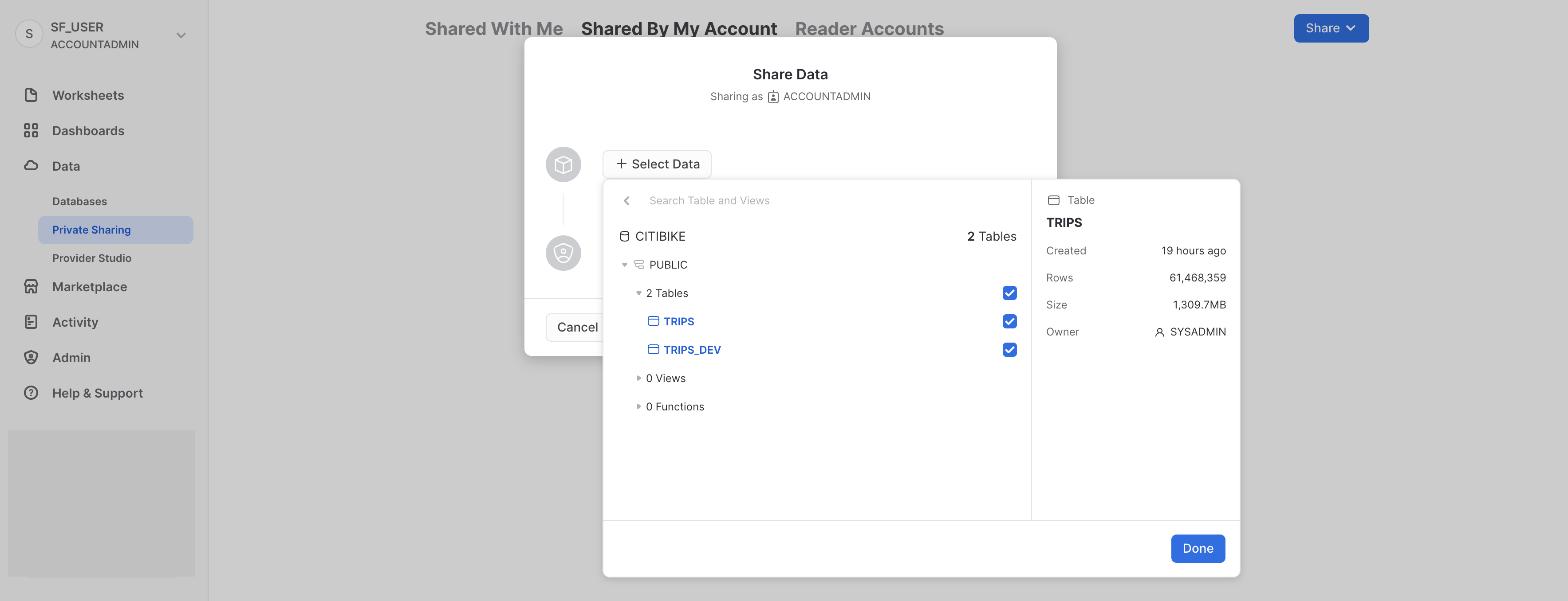 実際のシナリオでは、次に、Citi Bikeのアカウント管理者が1つ以上のコンシューマーアカウントを共有に追加することになると思いますが、今回のラボではそこまでは実行しません。
