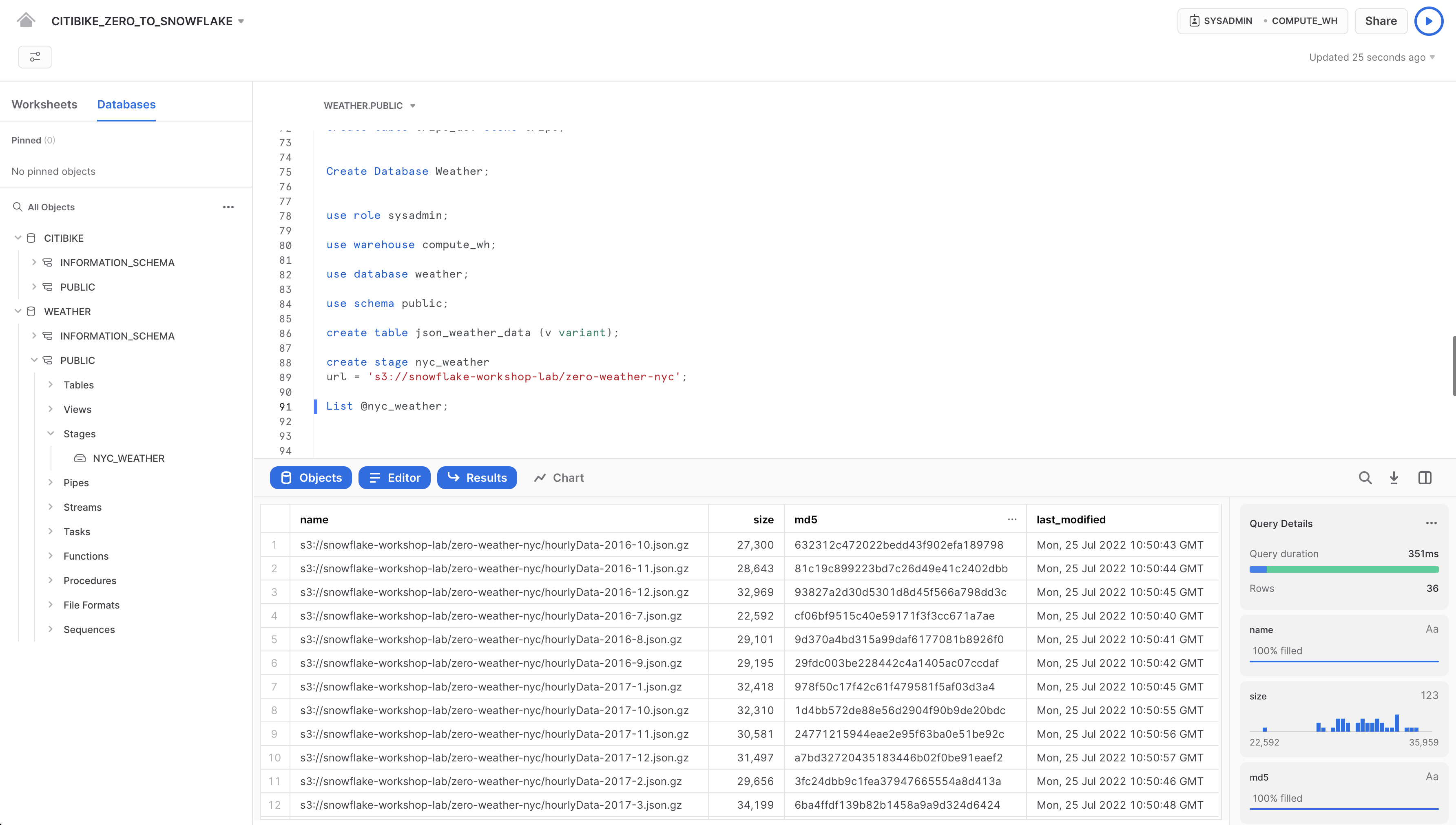 CITIBIKE_ZERO_TO_SNOWFLAKEノートブックで以下のコマンドを実行します。