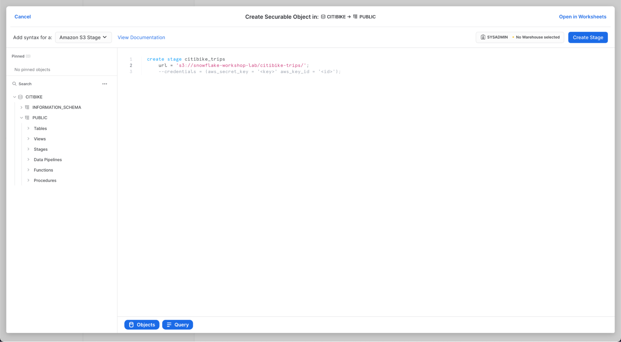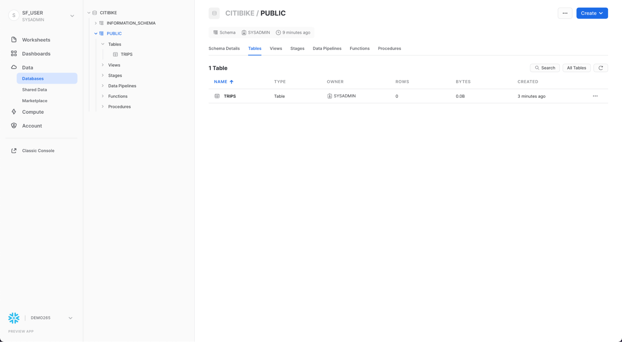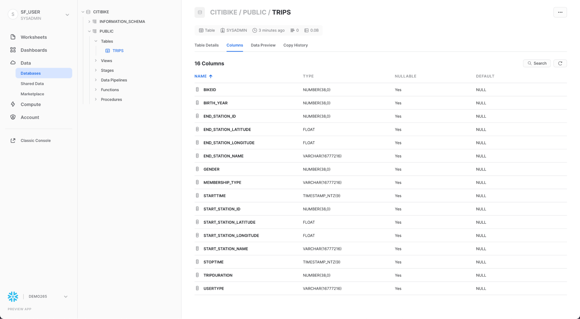 構造化されたCiti Bike利用者のトランザクションデータをSnowflakeにロードする準備から始めましょう。